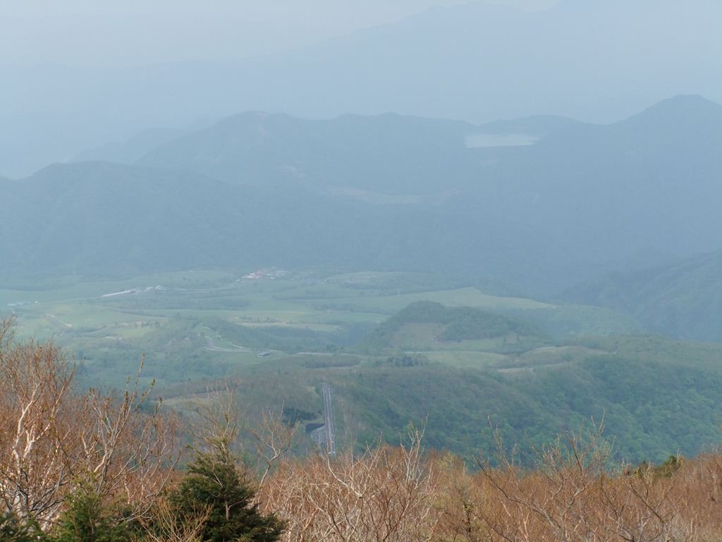 ササの斜面を登り切って振り返る霧降高原
